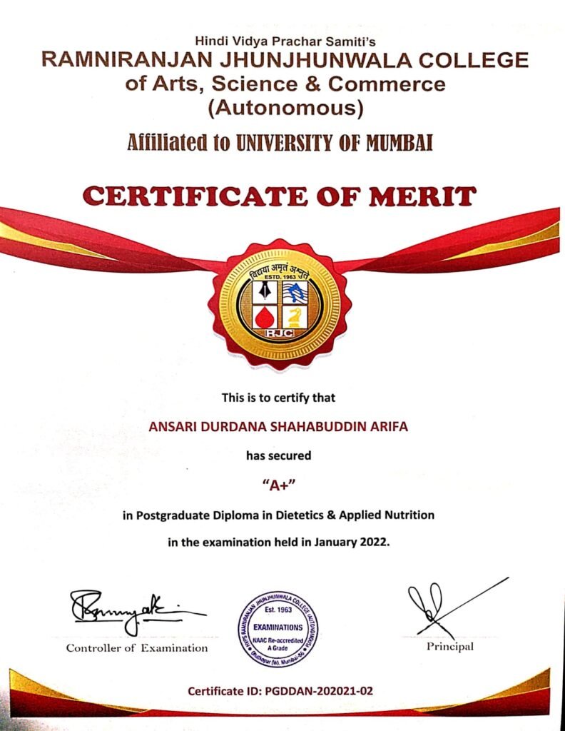 Welcome to Nutrition By Durdana, where science, tradition, and personalised care come together to help you live a healthier and more fulfilling life. I’m Durdana Ansari, a certified Nutritionist & Wellness Coach dedicated to guiding individuals toward sustainable lifestyle transformations. With a Postgraduate Diploma in Clinical Nutrition and Dietetics from the prestigious University of Mumbai and years of practical experience, I am committed to offering holistic solutions that truly make a difference.